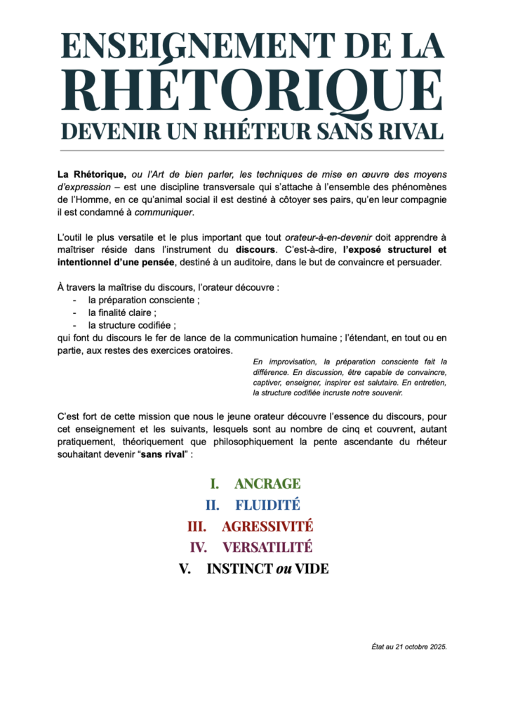 Prévue pour compenser l’absence actuelle de formation, et offrir des ressources en ligne gratuite à tout intéressé par l’art oratoire, notre Académie sera régulièrement mise à jour avec des articles, vidéos, prestations, analyses de discours.